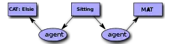 Le diagramme de droite est un exemple de la forme d'affichage d'un graphe conceptuel. Chaque boîte est appelé un nœud de concept, et chaque ovale est appelé un nœud de relation. En CGIF, ce graphe conceptuel serait représenté par la déclaration suivante: