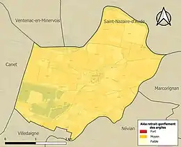Le retrait-gonflement des sols argileux est susceptible d'engendrer des dommages importants aux bâtiments en cas d’alternance de périodes de sécheresse et de pluie. La totalité de la commune est en aléa moyen ou fort (75,2 % au niveau départemental et 48,5 % au niveau national). Sur les 159 bâtiments dénombrés sur la commune en 2019, 159 sont en aléa moyen ou fort, soit 100 %, à comparer aux 94 % au niveau départemental et 54 % au niveau national. Une cartographie de l'exposition du territoire national au retrait gonflement des sols argileux est disponible sur le site du BRGM[25],[Carte 3].