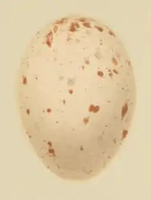 Une ponte comprend généralement entre 6 et 11 œufs[6],[15],[17], mais est plus réduite au Cachemire, à 1 500 m d'altitude, avec seulement 5 à 8 œufs[11]. Les dates de pontes varient suivant les régions, de fin mars dans l'Ouest de l'Europe et en Afrique du Nord à fin mai dans le Cachemire et juin en Islande[6]. La taille de la ponte est en moyenne légèrement plus petite en tout début de saison de reproduction, ou en fin de celle-ci[26]. La saison de reproduction peut être allongée par le remplacement d'une ponte perdue ou par une seconde ponte. Les œufs sont lisses, légèrement brillants et de forme ovale. Leur couleur varie du blanc au rosé, avec des taches brun-rougeâtre principalement situées dans la partie la plus large[15]. Les petites taches peuvent parfois en former une seule grosse[25]. La taille des œufs varie suivant les sous-espèces. Chez la sous-espèce type, leur taille moyenne est de 36 mm de long pour 26 mm de large. Ils pèsent environ 13 g[6], dont 7 % sont constitués par la coquille[27].