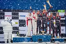Les vainqueurs Thierry Neuville et Nicolas Gilsoul célébrant leur victoire. | ||||||||
