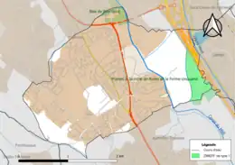 L'occupation des sols de la commune, telle qu'elle ressort de la base de données européenne d’occupation biophysique des sols Corine Land Cover (CLC), est marquée par l'importance des territoires artificialisés (73,9 % en 2018), en augmentation par rapport à 1990 (60,1 %). La répartition détaillée en 2018 est la suivante : zones urbanisées (58,2 %), zones agricoles hétérogènes (25,1 %), espaces verts artificialisés, non agricoles (11,6 %), zones industrielles ou commerciales et réseaux de communication (4,1 %), forêts (1 %)[26]. L'évolution de l’occupation des sols de la commune et de ses infrastructures peut être observée sur les différentes représentations cartographiques du territoire : la carte de Cassini (XVIIIe siècle), la carte d'état-major (1820-1866) et les cartes ou photos aériennes de l'IGN pour la période actuelle (1950 à aujourd'hui)[Carte 2].