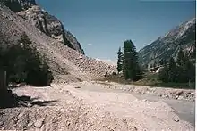Le cône de l'éboulis provoqua une inondation, le lit de la rivière Vispa étant comblé. Les géologues attribuèrent la catastrophe à des infiltrations d'eau dans un massif instable, sa dégradation pouvant avoir été accélérée par des séismes[10].