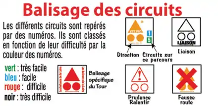 - numéro rouge : parcours difficile. Supérieur à 20 km avec plusieurs zones ardues (dénivelé, passages techniques), nécessite une bonne forme physique et un niveau adéquat ;