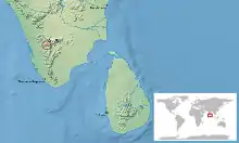 Cette espèce est endémique des Ghats occidentaux en Inde[1]. Elle se rencontre au Kerala et au Tamil Nadu.