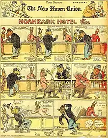 En , il fait paraître « Les contes du Père Rhault » cette fois à La Patrie : le strip se présente en couleurs et comporte des phylactères[10].