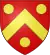 Ses armoiries sont: de gueules au chevron d'or accompagné de trois besants du même.