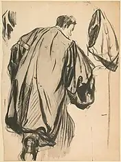 Raoul de Mathan assiste à des procès au Palais de Justice de Saint-Lô qu’il parvient à transcrire en une série de dessins. Les scènes variées du procès - salle d’audience, juge, avocats - sont immortalisées sur l’instant par le peintre en quelques coups de crayons[4].