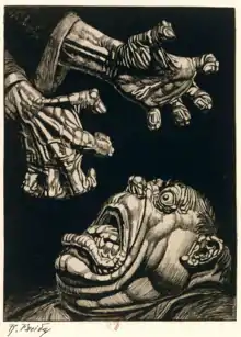 À l'issue de la Première Guerre mondiale, il produit un portfolio, Les misères de la Guerre, regroupant des dessins figurant des visages mutilés de soldats : il avait été chargé de ce travail afin d'aider les chirurgiens de la face opérant au service de santé des Armées[3].