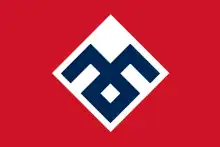 À cet emblème, s'ajouta un drapeau rouge frappé d'un losange blanc encadrant un signe bleu d'un bélier zodiacal stylisé, déjà utilisé par les néo-socialistes bordelais en 1934, mais dont la forme angulaire associée aux couleurs du drapeau évoque sans ambigüité la croix gammée des nationaux-socialistes allemands[35], ou la rune Odal inversée.