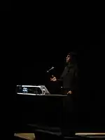 - Sur cette image issue d'une version de présentation, le robot a des jambes. Elles seront finalement supprimées dans la version finale.