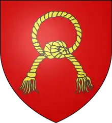 Delley de Blancmesnil (1866) donnait la description suivante : de queules à la cordelière d'or nouée en rond par le haut, dont les bouts, en tombant, figurent un sautoir et se terminent en forme de houppes[5].