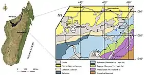 Sur la base des oursins Nucleolites amplus et Acrosalenia colcanapi comme fossiles index, la formation de Sakaraha a été corrélée au stade Bathonien (il y a 167,7 à 164,7 millions d'années) de l'époque du Jurassique moyen. Les dépôts du Jurassique moyen dans le bassin de Mahajanga ont produit un assemblage d'animaux inhabituel mais mal connu. En 2005, l'autre fragment de crâne trouvé dans la même localité que Razanandrongobe a été nommé comme le dinosaure sauropode Archaeodontosaurus[6]. Des dents de ptérosaures ont également été trouvées dans la localité[7]. Les animaux d'autres localités comprennent les sauropodes Lapparentosaurus et « Bothriospondylus » madagascariensis, et un autre sauropode basé sur des dents[8] ; des théropodes des groupes Abelisauridae , Ceratosauria basal, Coelurosauria et éventuellement Tetanurae, ainsi que des traces de l'ichnogenre Kayentapus[9],[10],[11] ; des crocodyliformes thalattosuchiens ; un mammifère appartenant au Tribosphenida[12] ; des plésiosaures ; et peut-être des ichtyosaures. Du bois silicifié est également présent dans les strates[3],[2].