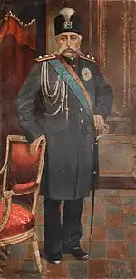 Portrait de Mozaffaredin Shah, entre 1896 et 1905 (seule peinture à l'huile sur toile connue de l'artiste).