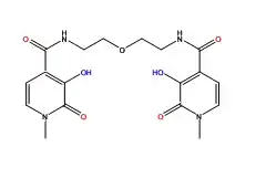 L'agent étudié est un ligand octadente constitué de quatre composants d'acide dipicolinique réticulés (Figure 2). Cette molécule est unique car elle peut être consommée par voie orale chez l'homme[14]. Il fonctionnerait en se coordonnant comme un ligand chélateur[15] avec les actinides toxiques présents dans l’organisme avant qu’ils ne puissent causer des dommages importants. En théorie, une fois que les ligands chélateurs se sont liés aux actinides, ces complexes de métaux lourds peuvent sortir naturellement du corps par voie urinaire.