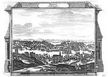 Le retour à Brest depuis la Nouvelle-France le de l'escadre commandée par Dubois de La Motte avec environ 5 000 hommes malades du typhus (épidémie qui se répandit d'ailleurs dans tout le Léon), oblige à accueillir les victimes dans des casernes servant d'hôpital provisoire situées pour partie à Recouvrance et même dans les églises des couvents des Carmes et des Capucins[34]. C'est le quartier de Recouvrance qui est le plus atteint par la maladie[35].