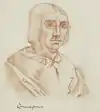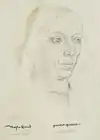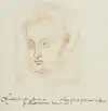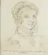 - Le portrait est manquant mais il a laissé une trace (estampage) sur la page d'en face.