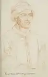 - Le portrait est manquant mais son estampage au visible au verso du feuillet 281, qui lui faisait face dans une reliure antérieure.