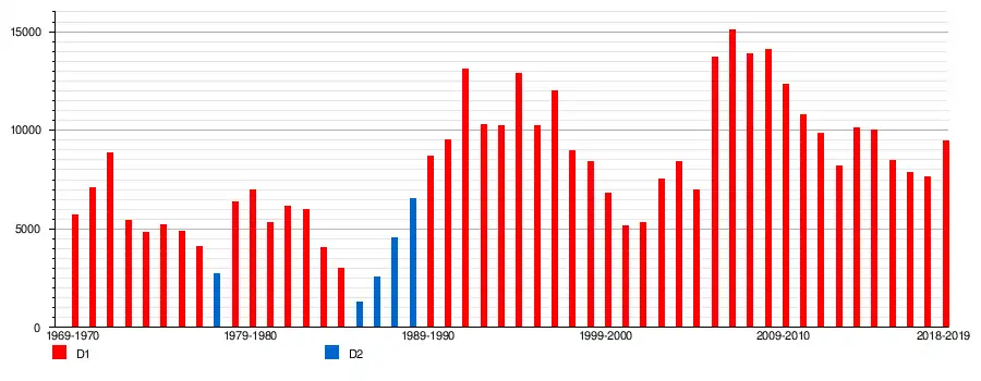 | Ligue des champions (C1) | 19 | 92 | 37 | 23 | 32 | 129 | 123 | +6 |