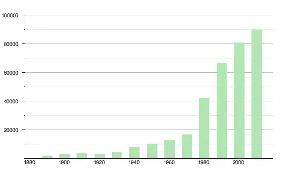 | 1980 | 42 103 | ▲ +152,73 % | |