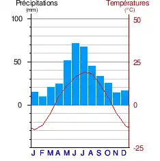 | Température moyenne (°C) | −14,7 | −11,7 | −4,8 | 4,8 | 11,3 | 16,2 | 18,9 | 18,1 | 11,8 | 4,3 | −5,2 | −12,4 | 3,1 |
