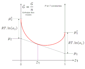 - pour l'espèce 1 est pure et le potentiel chimique de l'espèce 1 pure à et .