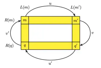 Lemme de Green — Soient et deux éléments -équivalents, et soient et tels que et . Les applications et sont des bijections de sur , réciproques l'une de l'autre, et qui envoient une -classe sur elle-même.