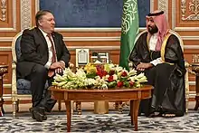 En , l'affaire Jamal Khashoggi met les États-Unis dans une situation difficile alors que Donald Trump et son gendre, Jared Kushner, partagent un lien personnel et officiel fort avec Mohammed ben Salmane. Lors d'une interview, Trump promet d'aller au fond de l'affaire et qu'il y aurait des « sanctions sévères » si le royaume saoudien était impliqué dans la disparition ou l'assassinat du journaliste. Une réponse contrariée vient du ministère saoudien des Affaires étrangères disant que si l'Arabie saoudite « reçoit une action, elle répondra par une action plus importante », mentionnant « le rôle influent et vital du royaume riche en pétrole dans l'économie mondiale »[10].