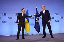 Le , lors d'une réunion avec le Premier ministre Boris Johnson à Londres, le président Volodymyr Zelensky déclare que l'Ukraine a besoin d'un plan d'action pour l'adhésion à l'OTAN, car l'adhésion à l'OTAN contribuera à la sécurité et à la défense de l'Ukraine[46].