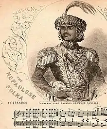 En 1846, un officier Jang Bahadur Rana pris le pouvoir par la force au Népal et devint premier ministre à vie, retirant les pouvoirs au roi[6]. Il devint donc l'homme fort du pays et le restera jusqu'à sa mort. Curieux et envieux des puissances occidentales et notamment de la puissance britannique, il décida de se rendre à Londres et de visiter le pays en 1850[6]. Sur le chemin du retour, il souhaita passer par la France et notamment Paris. Il arriva le 22 août 1850 à Paris pour un séjour de six semaines[1].