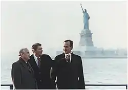 Le , l'Union soviétique a été dissoute et la Communauté des États indépendants, une association des républiques constituantes de l'ex-URSS (à l'exception des États baltes), a été formée. La république socialiste fédérative soviétique de Russie est devenue un État indépendant qui a hérité du statut de membre permanent du Conseil de sécurité des Nations unies et qui s'est proclamée le successeur de l'URSS[réf. nécessaire].