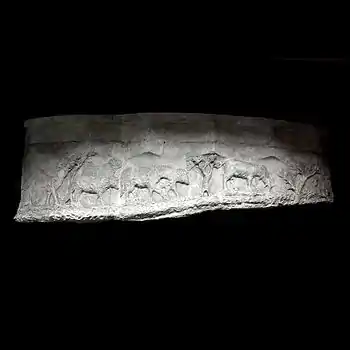 - Le musée du Louvre conserve, dans sa collection de moulages hébergée dans la Petite Écurie de Versailles, environ un tiers de la frise, ainsi que toute la base remontée.
