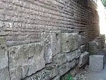- Des éléments de cette première fortification sont retrouvés sur plusieurs dizaines de mètres à l'est de l'enceinte du Bas-Empire[1].