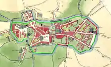À la même époque, entre 1572 et 1599, des demi-lunes et ouvrages à cornes sont ajoutés à l'enceinte[note 9],[13],[10] :