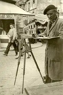 A la fin de son service, ayant fait le choix de partir à Paris pour suivre des cours de dessins et peinture, il devient caissier aux Grand Magasins du Louvre. Il commence à découvrir Paris, ses quartiers, ses immeubles, commerces, églises. La semaine il installe son chevalet sur les trottoirs de Montmartre, Notre Dame,où du quartier latin et le dimanche, il vend ces toiles sur le Boulevard Raspail.