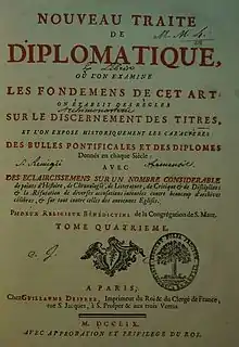 - Nouveau traité de diplomatique, où l'on examine les fondements de cet art, on établit des règles sur le discernement des titres et l'on expose historiquement les caractères des bulles pontificales et des diplômes donnés en chaque siècle, par deux religieux bénédictins de la Congrégation de Saint-Maur, 6 vol., 1750-1765.Avec dom Charles-François Toustain. Les quatre derniers volumes ont été publiés par Tassin après la mort de Toustain.