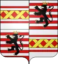 Blasonnement : René de Bouillé écartelait ses armes d'un burelé d'argent et de gueules de huit pièces, un lion morné brochant sur le tout.