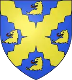 Armes des Perchambault : d'azur, au sautoir endenté d'or, cantonné de 4 têtes de lion arrachées d'or, lampassées de geules