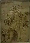 | 56 | Une vieille femme nue, debout, penché en avant, de profil vers la gauche[LLB 65],[LLB 66] | Michel-Ange | vers 1520 | pierre noire, traces de stylet | H. 37 cm ; l. 13,7 cm | INV 710 recto | département des Arts graphiques, collection Everhard Jabach, acquise pour le Cabinet du roi en 1671 | ||