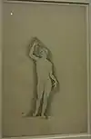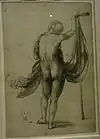 ![]() | 61 | Académie d'homme debout, main droite sur la tête[LLB 70] | Peter Vischer dit le Jeune | début du XVIe siècle | plume et encore noire, incisions à la pointe de métal | H. 32 cm ; l. 21,2 cm | INV 19053 recto | département des Arts graphiques, provenant d'un album qui aurait appartenu à Peter Vischer le Jeune | |