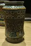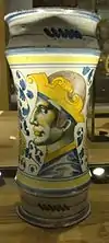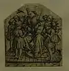 ![]() | 29 | Les Amants surpris par la Mort, d'après une gravure de Hans Burgkmair l'ancien[LLB 36] | Nicola da Urbino | Urbino | vers 1525 | plat, faience | H. 3,5 cm ; diam. 28 cm | OA 7577 | département des objets d'art, legs de la baronne Salomon de Rothschild, 1922 |