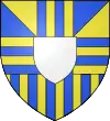 Contre-palé de douze pièces d'azur et d'or, à dextre, un canton carré tranché d'or et d'azur et à sénestre un canton carré taillé d'azur et d'or ; à une fasce contre-fascée d'or et d'azur ; à un écusson d'argent, brochant sur-le-tout[3]. |