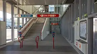 Station aérienne, elle dispose de deux accès au niveau du sol équipés chacun d'un escalier et d'un ascenseur permettant l'accessibilité des personnes à la mobilité réduite[2].