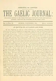 Le renouveau gaélique (Gaelic revival en anglais, ou Athbheochan na Gaeilge en irlandais, expression qui peut se traduire en français comme « renouveau » ou « renaissance de la langue irlandaise ») fut un mouvement de la fin du XIXe siècle qui cherchait à la fois à préserver la langue irlandaise (souvent connue à l’époque sous le nom de Gaelic)[1] et à réaffirmer la place de la culture gaélique – y compris la musique, les sports, les arts et le folklore irlandais – au sein d'une société irlandaise que l'on croyait sur le point de perdre ce qui lui restait de son identité particulière. Expression du nationalisme romantique, le Gaelic revival peut être rattaché à d’autres mouvements qui existaient dans d’autres pays européens à la même époque.