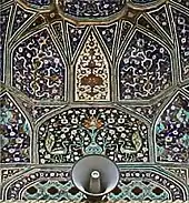 Au contraire, dans l'Égypte fatimide (969-1171), Richard Ettinghausen relève une recherche de pittoresque et de réalisme, qu'on peut rapprocher des traditions coptes de l'image[66], de nombreux artistes égyptiens étant d'ailleurs coptes. L'image figurative y est très présente, sur la céramique, sur le bois, dans la pierre dure, en ronde bosse et sur des peintures rarement conservées. Un muqarnas peint, conservé au musée d'art islamique du Caire, témoigne de l'existence d'une pratique de peinture murale [O 5], tandis que quelques dessins fragmentaires ont été retrouvés sur papier[O 6] et en ronde bosse. Néanmoins, le style du plafond de la chapelle palatine de Palerme, attribué parfois à des artistes fatimides, se rapproche, comme celui de certains dessins, de la stylisation abbasside[67].