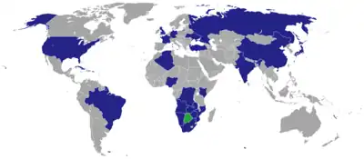 Carte des pays qui ont des représentations diplomatiques au Botswana
