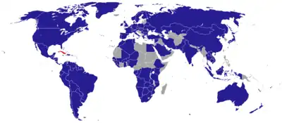 - (en) Cet article est partiellement ou en totalité issu de l’article de Wikipédia en anglais intitulé « List of diplomatic missions of Cuba » (voir la liste des auteurs).
