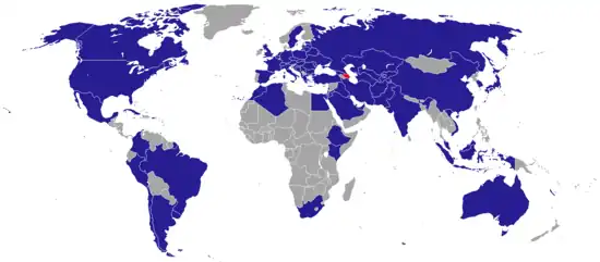 Carte des représentations diplomatiques de l'Azerbaïdjan.