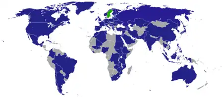 Ceci des une liste des représentations diplomatiques de la Suède. La Suède dispose d'un réseau diplomatique de taille moyenne composé de 79 ambassades et de 7 consulats généraux, complété par des consulats honoraires, des centres culturels et des missions commerciales. Dans les pays sans représentation suédoise, les citoyens suédois peuvent demander l'aide des fonctionnaires des services étrangers de n'importe lequel des autres pays nordiques (en), conformément au traité d'Helsinki[1].