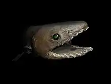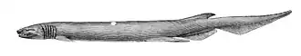 Cette espèce vit sur la zone externe du plateau continental et du talus continental supérieur, généralement près du fond. Il vit jusqu'à 1 570 mètres de profondeur, alors que dans la baie de Suruga, au Japon, il est plus courant à des profondeurs de 50 à 200 mètres. Son corps atteint jusqu'à 2 mètres de long et arbore une couleur brun foncé, ressemblant à une anguille avec les nageoires dorsales, pelviennes et anales placées loin en arrière.
