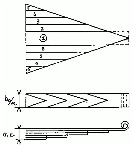 - la plus longue lame, ou lame maîtresse, doit avoir une section suffisante pour résister seule à l'effort tranchant, ainsi que pour permettre la liaison avec les éléments extérieurs. Son extrémité n'est donc jamais triangulaire, mais toujours façonnée en fonction des besoins ;
